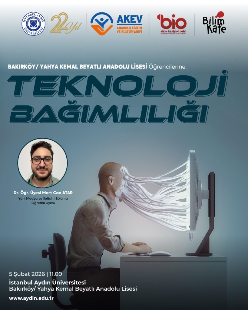 In the digital age, the conscious and balanced use of technology is more important than ever. Organized in collaboration with Istanbul Aydın University, the Anatolian Education and Culture Foundation (AKEV), and the Science Communication Office, the seminar titled “Technology Addiction” will examine young people’s relationship with technology from a multidimensional perspective.