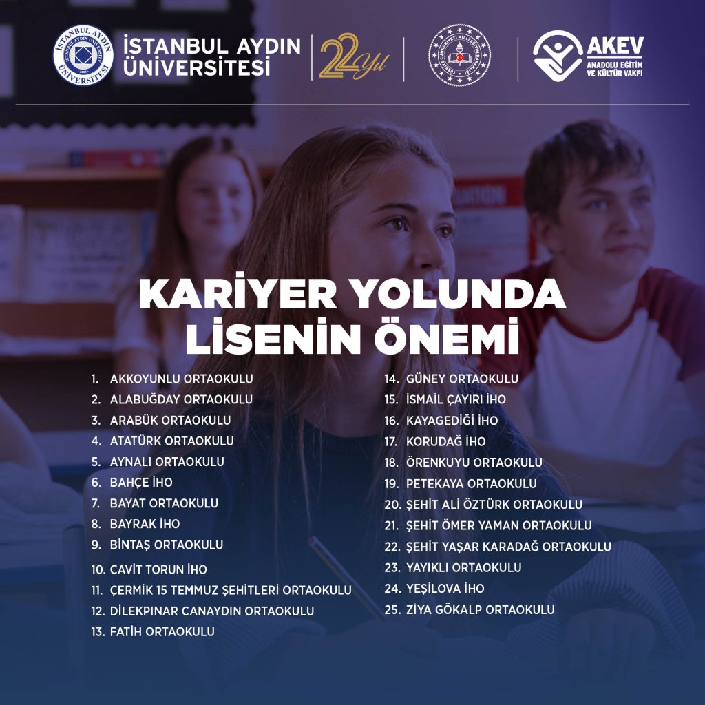 Organized in collaboration with Istanbul Aydın University, Anadolu Education and Culture Foundation (AKEV), and the Turkish Ministry of National Education, the seminar series titled “The Importance of High School in Career Path” is about to begin.